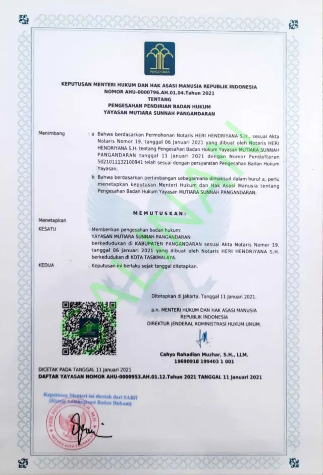 - SK MenHukHam: AHU-0000796.AH01.04 Tahun 2021