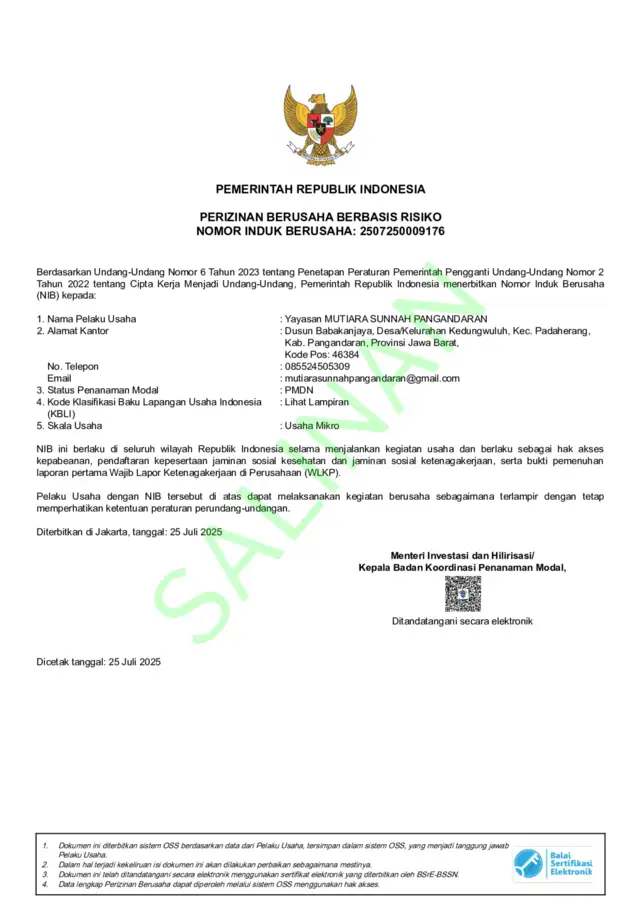 - Nama Yayasan: MUTIARA SUNNAH PANGANDARAN
